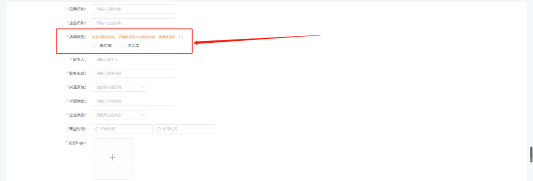 我们商家注册完我们商城后台,需要创建我们的企业,创建企业时,就需要选择我们的商铺类型了,商铺类型分为多店铺与单店铺。