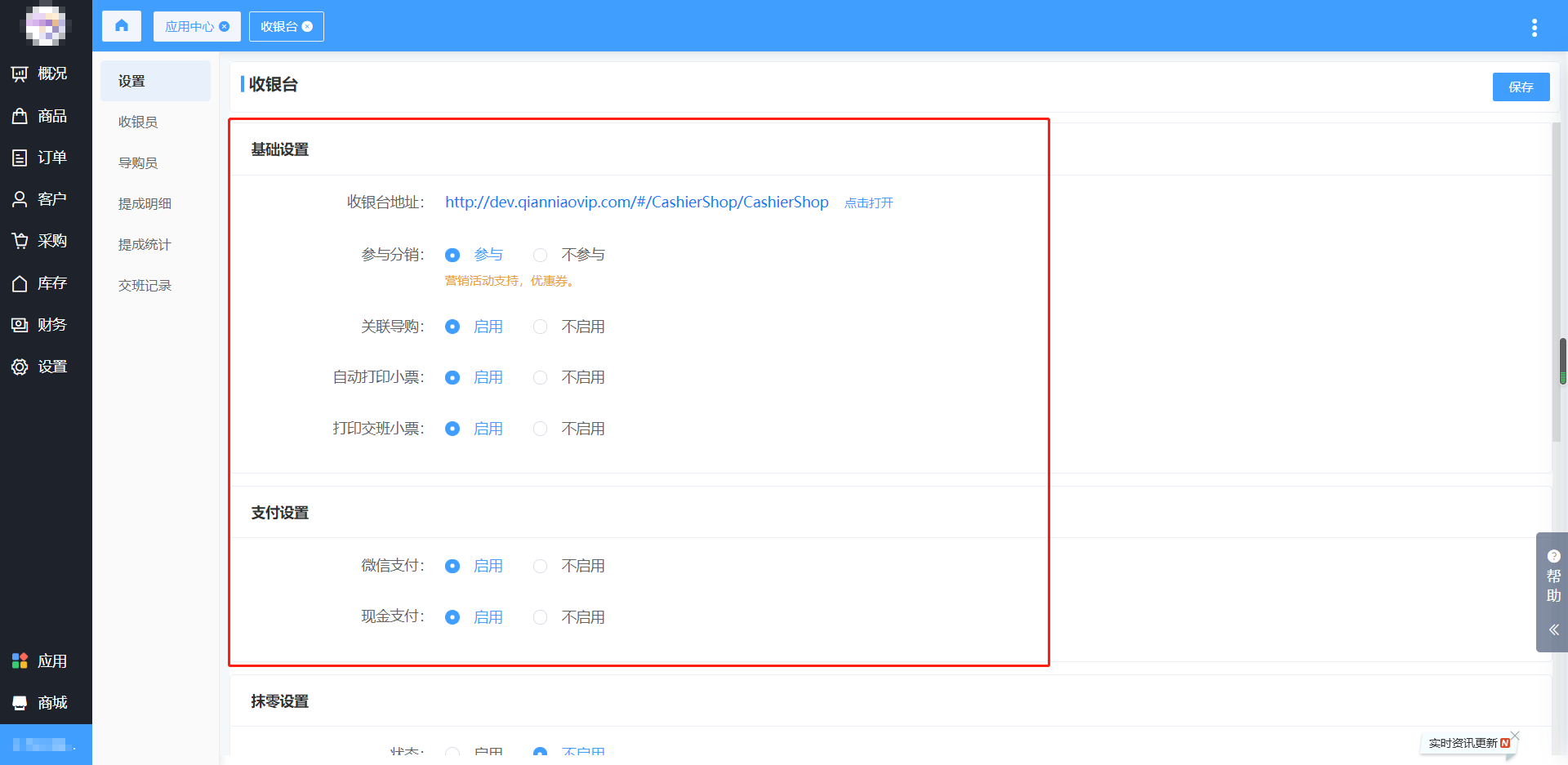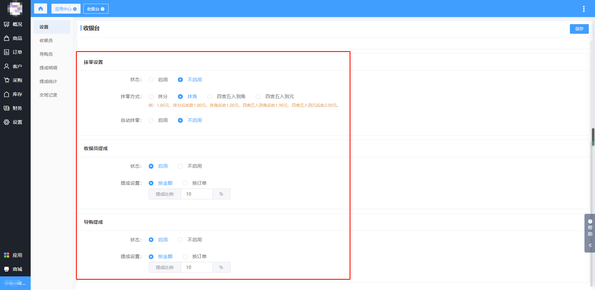 系统支持统计收银员和导购员提成,提成比例支持统一比例,也可针对收银/导购人员单独设置。