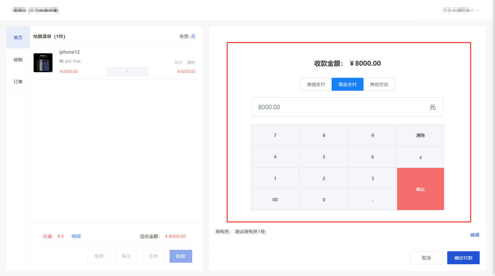 当收银台开启导购功能后,在结算时,可以选择该单的导购。