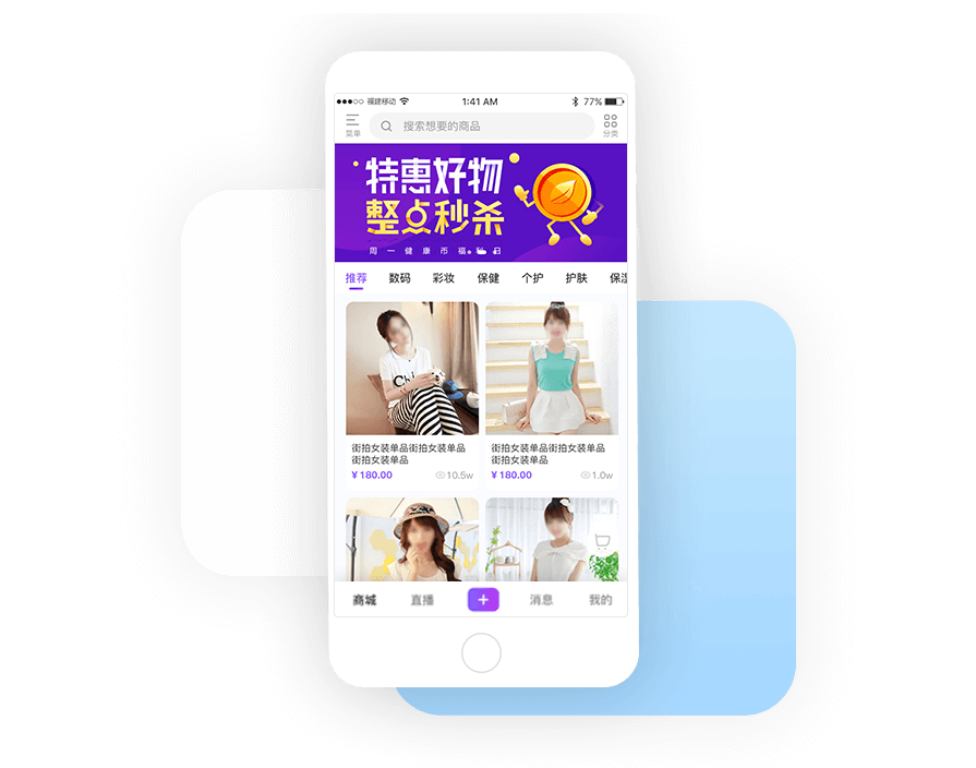 整合各渠道优质资源,提供多种直播带货模式,打造特色“直播+商城”平台。