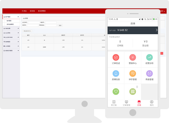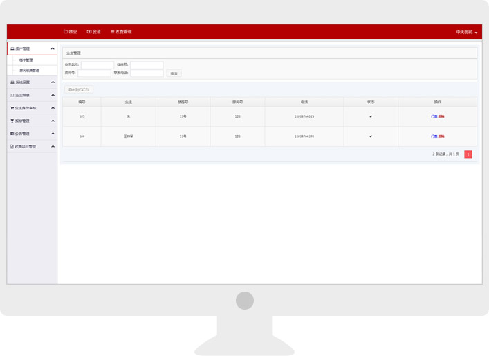 独立PC管理后台,集业主管理、物业服务、资产管理为一体