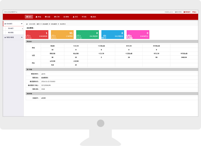 一个PC端管理后台,轻松管理用户、物业、商家、代理商等